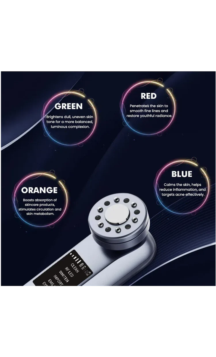 Red, green, and orange light help brighten, balance, and refine skin texture for a more radiant complexion.